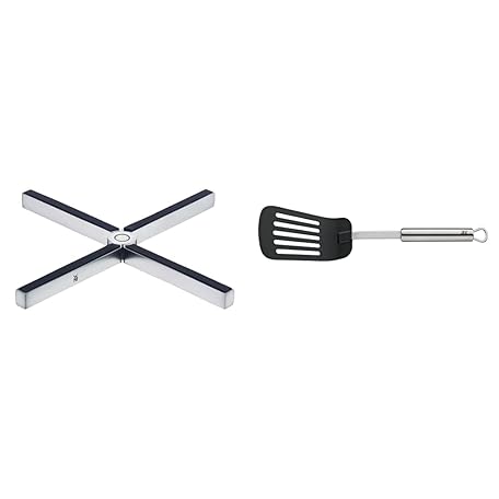 WMF MisterX Topfuntersetzer klappbar 19 x 19 cm & Profi Plus Pfannenwender Kunststoff 32,2 cm, Cromargan Edelstahl teilmattiert, Kunststoffvorderteil, spülmaschinengeeignet, hitzebeständig