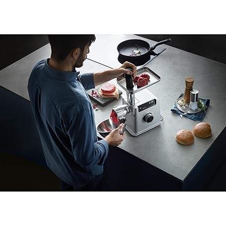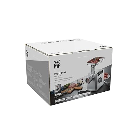 Thông tin sản phẩm WMF Profi Plus Electric Meat Mincer, Sausage Filling Machine, Return, 3 Perforated Discs, Kebbe and Biscuit Attachment, 2200 W Blocking Power, 350 W