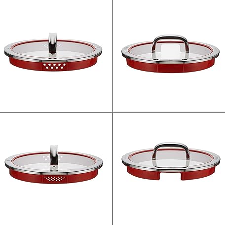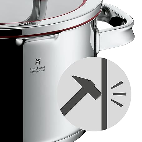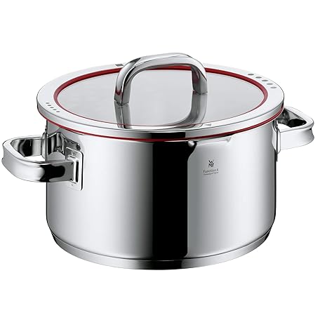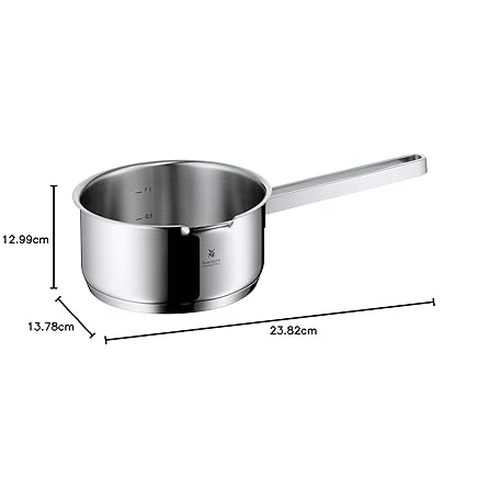 Thông tin sản phẩm WMF Set of 4 Pots, Scale on Inside, Lid with 4 Pouring Functions, Glass Lid, Polished Cromargan Stainless Steel, Suitable for Induction Cookers, Dishwasher-Safe