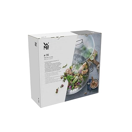 Sản phẩm WMF Wok-set 2-pieces Macao uncoated Ø 36cm Party pouring rim stainless steel handle Cromargan stainless steel suitable for induction dishwasher-safe đang được bán với giá ưu đãi là $146.4306 tại nước Đức.