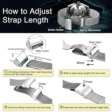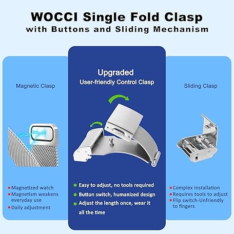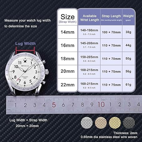 Thông tin sản phẩm WOCCI Elite Metal Watch Strap for Men and Women, Mesh Woven, 316L Stainless Steel, Quick Release, Folding Clasp, Strap Width 14 mm, 16 mm, 18 mm, 20 mm, 22 mm