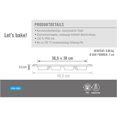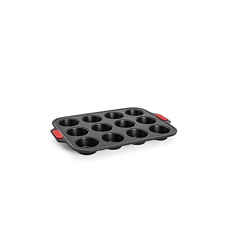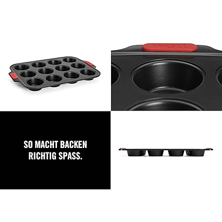 Thông tin sản phẩm Woll Bakeware Muffin Pan for 12, with Heat Resistant Silicone Handles up to 230°C, PFAS Free, Dual Layer Non-Stick Coating, Aluminised Steel, Black