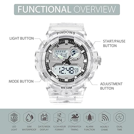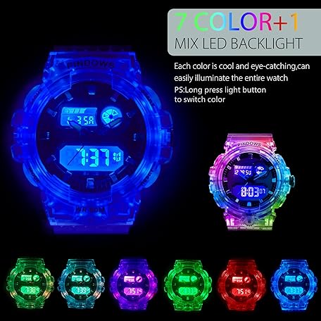 Thông tin sản phẩm Women's Digital Sports Watch for Women, Teenagers, 7 Coloured LED Light, Large Analogue Digital Display Watch with Waterproof Alarm Light, Stopwatch, Hourly Bell Strike, Multifunctional Wristwatches