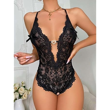 Women's One Piece Lingerie Sexy Teddy V-Neck Bodysuit Lace Nightdress Mini Babydoll