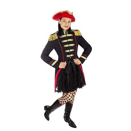 Women's Soldier Napoleon Jacket Carnival Costume Uniform Fancy Dress Frock Cologne 36-54 Black (42)