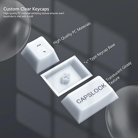 Thông tin sản phẩm Womier Clear Keycaps, White Elegant Keycaps, 75 Percent Cherry Profile Keycaps, Custom Set, 140 Keys, White Mist, Translucent for Mechanical Keyboard Cherry