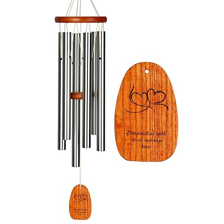 Woodstock Windspiel, personalisierbar, erstaunliche Anmut, Gedenkspiel für draußen, 61 cm, mittelgroß, silberfarben, individuelles Doppelherz-Windspiel für Außenbereich, Terrasse, Haus, Garten