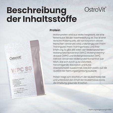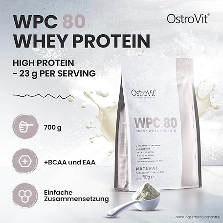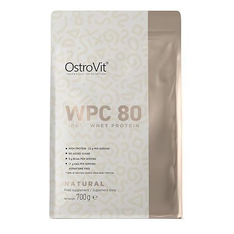 Thông tin sản phẩm WPC 80 100% Whey Protein Concentrate, 700 g, 23 g Protein per Serving, Natural Flavour Protein Powder without Additives, Perfect Solubility, Rich in BCAAs & EAAs OstroVit