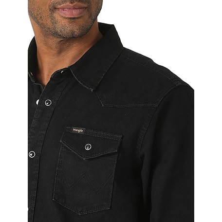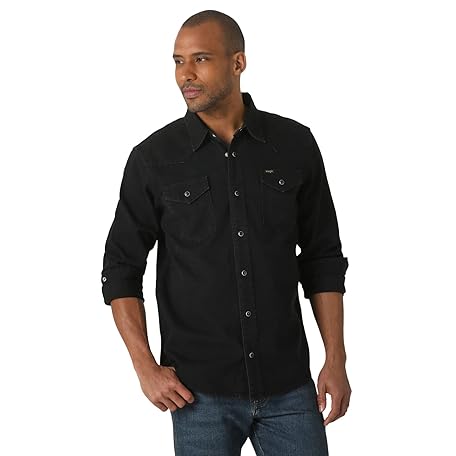 Wrangler Men's Iconic Denim Regular Fit Snap Shirt with Button-Down Collar