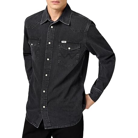 Wrangler Men's LS Western Shirt Casual Shirt, Dark Stone, L