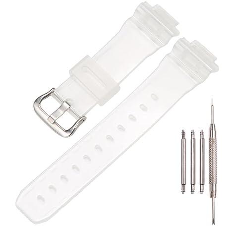 XBDSW Harz Sportuhr Ersatzband Kompatibel mit DW9052 DW6900 DW-004C Uhrenarmband 16mm-25mm Lug Gummi Uhrenzubehör (Btransparent)