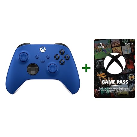 Sản phẩm Xbox Wireless Controller - Shock Blue + Game Pass Ultimate | 1 Monat Mitgliedschaft đang được bán với giá ưu đãi là $106.3077 tại nước Đức.