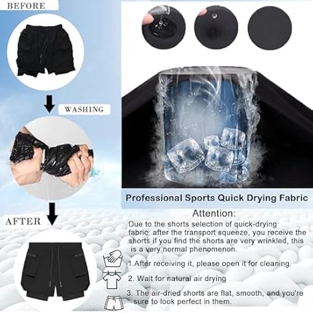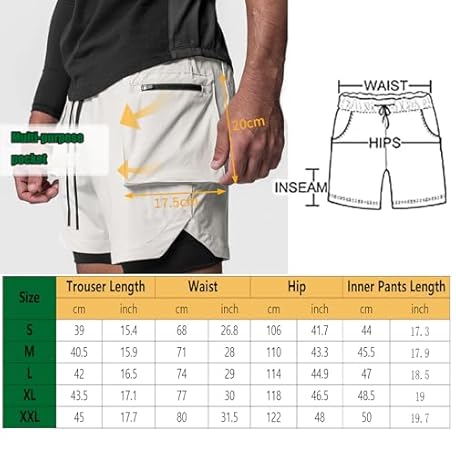 Thông tin sản phẩm XDSP Men's Sports Shorts, Quick Drying Sports Trousers, 2-in-1 Shorts, Summer Quick-Drying Running Shorts, Zip Pockets, Fitness Running Trousers, Breathable, Lightweight Sports Trousers, 4-Way Stretch