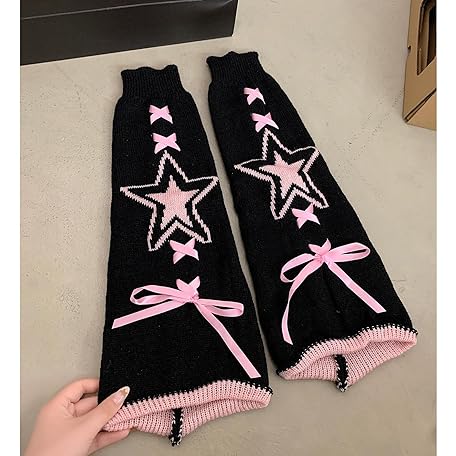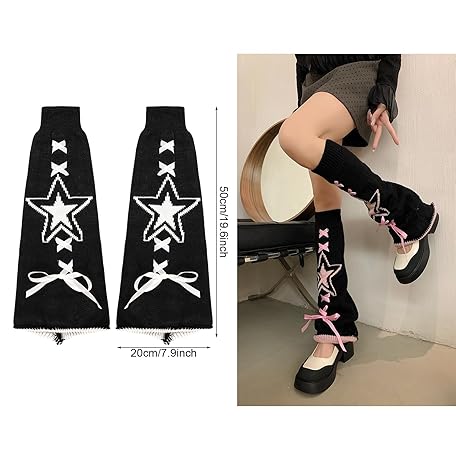 Thông tin sản phẩm XEPST Stulpen Damen Lose Gestrickte Beinwärmer für Damen, Y2K Japanische Lolita Beinstulpen Lange Socken Kawaii Häkeln Beinwärmer 80er Harajuku Gestrickte Warme, Weißes Pentagramm-Muster
