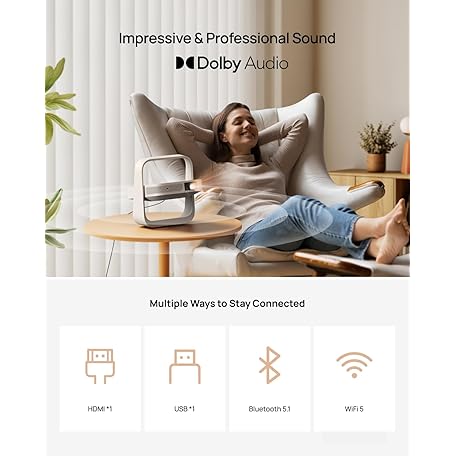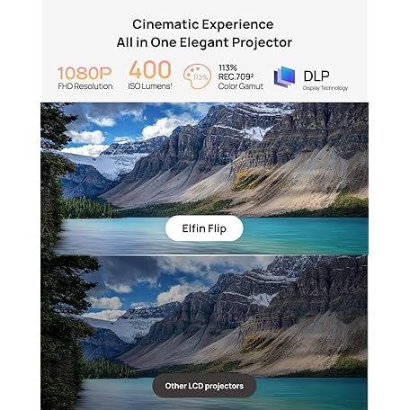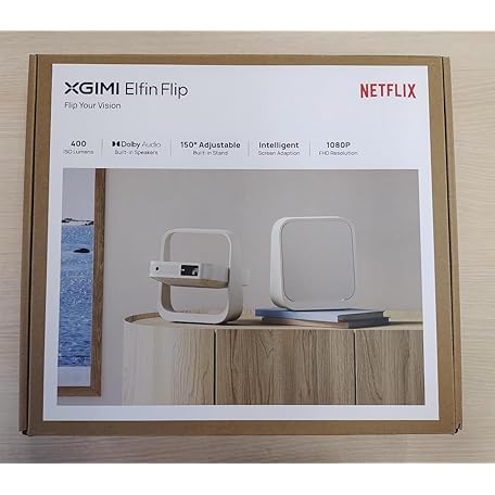 Thông tin sản phẩm XGIMI Elfin Flip, 1080P Portable Projector, DLP Projector, Licensed Netflix, Integrated Adjustable Stand, 400 ISO Lumens, Screen Adjustment, 2 x 3W Integrated Speakers