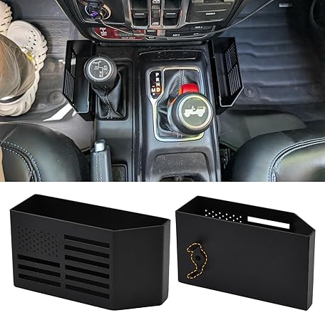 • XhuangTech Metall-Mittelkonsolen-Organizer für J-eep Wrangler JL/JLU 2018–2025 & 4XE 2021–2025, Gladiator JT 2024, 2023, 2022, 2021, 2020, Zubehör, Schalt-Aufbewahrungsbox, Flagge (nicht für JK/JKU)