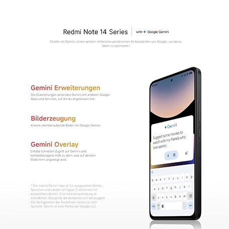 Sản phẩm Xiaomi Redmi Note 14 Smartphone, 8 + 256 GB, Black, 108 MP AI Camera System, 5500 mAh Battery, 120 Hz Eye Protection Display, AI Functions (Charger Not Included) đang được bán với giá ưu đãi là $216.0489 tại nước Đức.