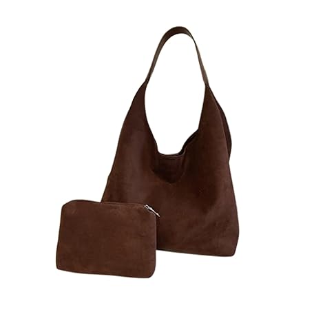 Xiyocadt Suede Hobo Bag, Leather Hobo Shoulder Bag, Slouchy Tote Bag, Brown Leather Purse