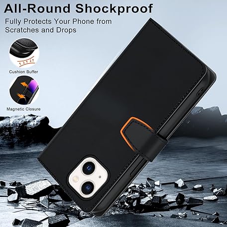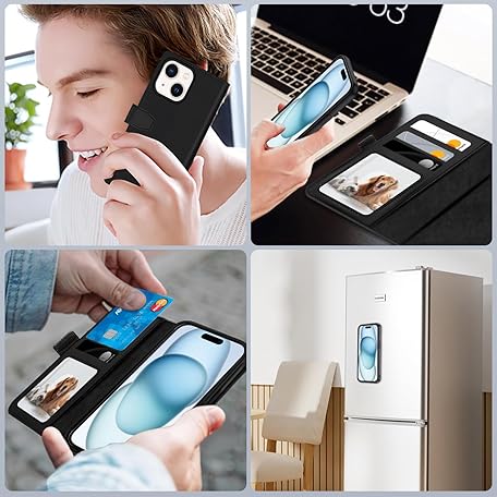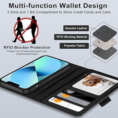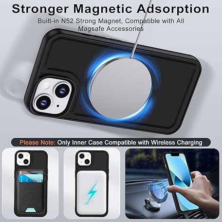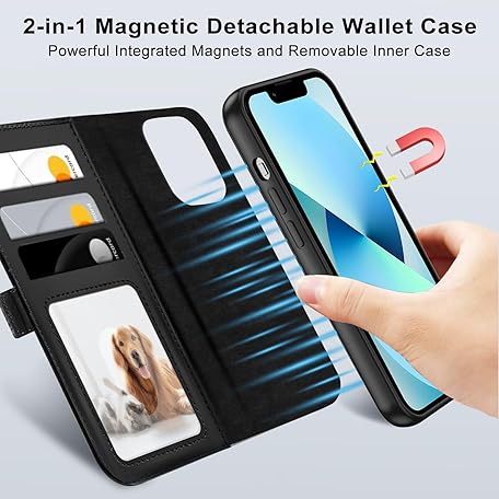 Thông tin sản phẩm XTCASE Leather Case for iPhone 13, Magnetic Compatible with MagSafe, 2-in-1 Removable Mobile Phone Case, Flip Case, Wireless Charging, Card Slot, Stand, Folding Flip Case, Black