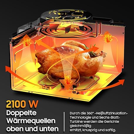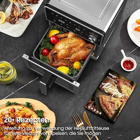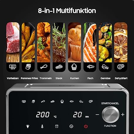 Thông tin sản phẩm XXL Hot Air Fryer 8L - 2100W Airfryer with Top and Bottom Heat, Hot Air Fryer with Window, 8-in-1 Multifunction, 360° Metal Design, Touch Screen, Recipes for Easy Frying
