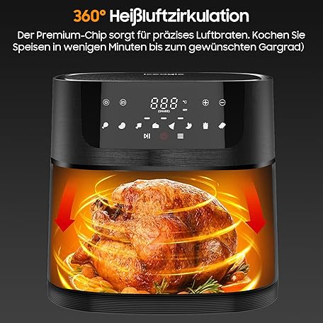 Sản phẩm XXL Hot Air Fryer 9L - 1800W Airfryer with Viewing Window, Oil Free Fryer, 8 Programmes, Digital LED Touch Screen, Recipe Book, Healthy Cooking đang được bán với giá ưu đãi là $102.896 tại nước Đức.