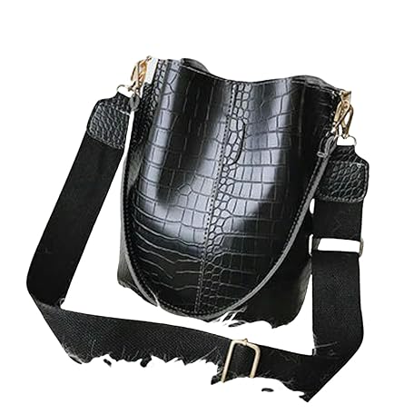 • XYNM Handtasche Frauen Hobo -umhängetasche, Krokodilmuster Handtaschen Große Kapazität Crossbody Bag Vintage Lederstein Muster Taschen Für Umhängetasche Geldbörsen Eimer Taschen-schwarz-26cmx28cmx16cm