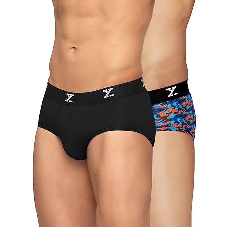 XYXX Herren Unterwäsche Ace & Shuffle IntelliSoft Antimikrobielle Micro Modal Brief 2er Pack, Camouflage-Blau, Orange und Schwarz, 6