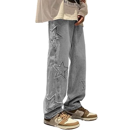 Y2k Herren-Jeans, hohe Taille, Hip-Hop, Streetwear, lockere Baggy-Stickerei, ästhetische Harajuku-Denim-Hose, GRAU, X-Groß