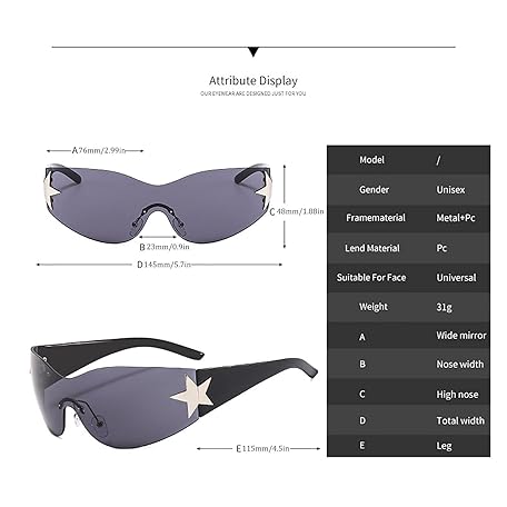 Thông tin sản phẩm Y2Kk Sunglasses for Women Rimless Sunglasses 2000s Trendy Star Y2K Glasses Umbrellas UV400 for Men and Women, C1, 1