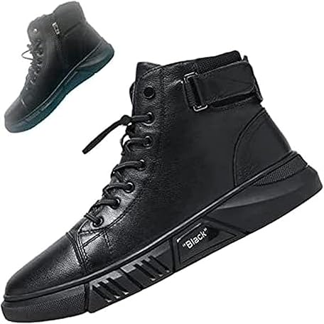 Yacriso Mens Casual Versatile Genuine Leather Ankle Boots Classic Black Lightweight Sneakers Soft Sole Classic Stylish Lace Up Side Zip
