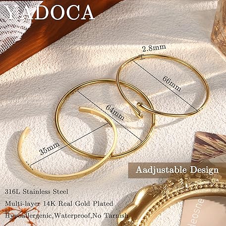 Thông tin sản phẩm YADOCA Bangle Gold Bracelet Women's Gold Bracelet, 3 Pieces Bracelet Set, 18 K Gold Stainless Steel Bracelet, Gold Women's Bracelets, Women's Jewellery, Silver Bangle Lady, Valentine's Day for Her