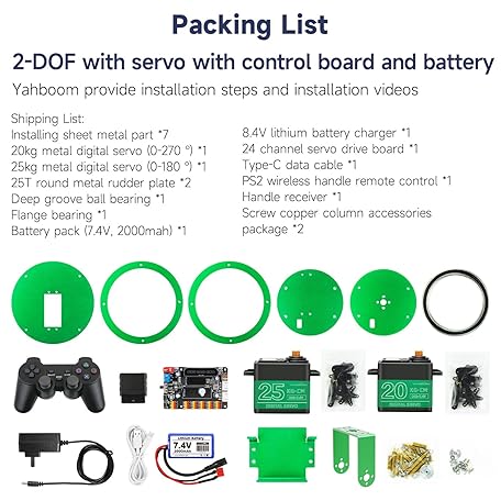 Thông tin sản phẩm Yahboom 2-DOF Servo Pan-Tilt Kit for DIY Robot, Electric Platform with Metal Servo, Accessories for Camera or Robot Arms Bracket (2DOF Metal servo with Control Board and Handle)