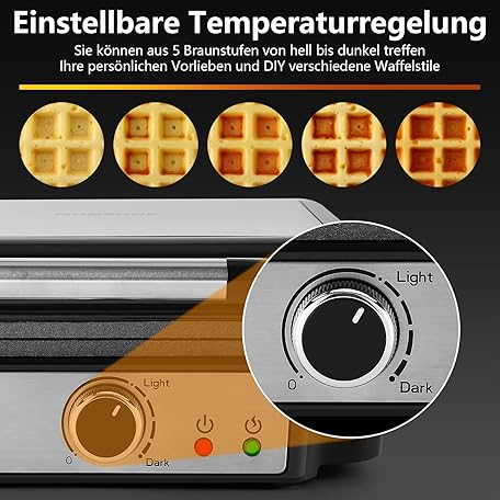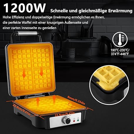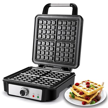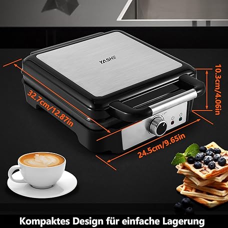 Sản phẩm YASHE Belgian Waffle Iron, 4 Slices, Square Belgian Waffle Iron, 5 Browning Buttons, Indicator Lights, Anti-Overflow, Non-Stick Coating, 1200W, Silver/Black đang được bán với giá ưu đãi là $50.8812 tại nước Đức.