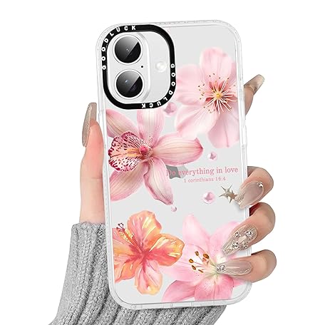 Yoedge Transparent Mobile Phone Case for iPhone 16 Case, Aesthetic Hibiscus Flowers, Colourful Summer Pattern, Cute Flower Design, Girls Gift, Protective Case, Silicone Case Cover for iPhone 16 6.1