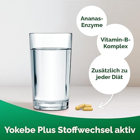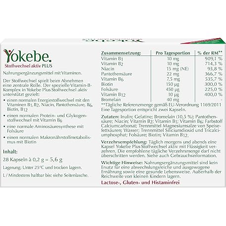 Sản phẩm Yokebe Plus Metabolism Active - Metabolic Capsules with Vitamin B Complex and High-Quality Pineapple Enzymes to Support a Diet - 28 Capsules with 0.2 g = 5.6 g Each đang được bán với giá ưu đãi là $11.3687 tại nước Đức.