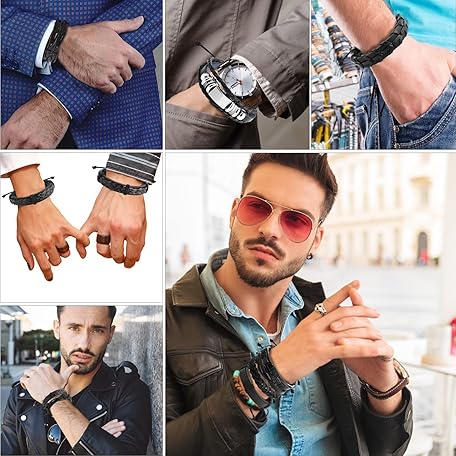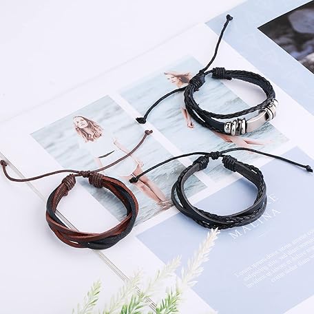Sản phẩm Yolev Pack of 12 Men's Braided Leather Bracelets, Men's Jewellery, Women's Cuff Wrap Bracelets, Adjustable, Black, Brown, Wide Bracelets, Braided Leather Bracelets, Leather, No gemstone đang được bán với giá ưu đãi là $13.952 tại nước Đức.