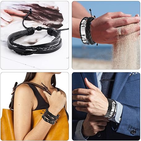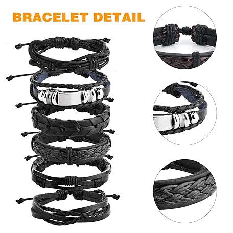 Thông tin sản phẩm Yolev Pack of 12 Men's Braided Leather Bracelets, Men's Jewellery, Women's Cuff Wrap Bracelets, Adjustable, Black, Brown, Wide Bracelets, Braided Leather Bracelets, Leather, No gemstone
