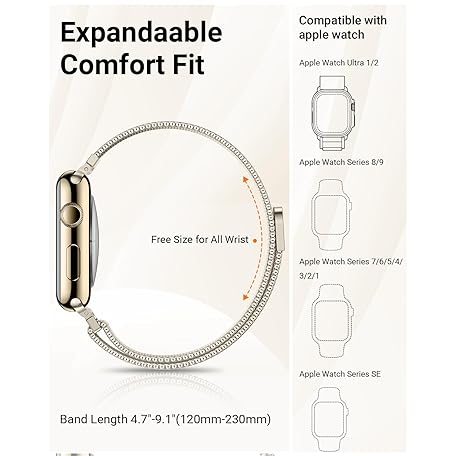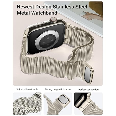 Thông tin sản phẩm Yoohoo Replacement Strap Compatible with Apple Watch Strap 40 mm 41 mm 42 mm 46 mm 44 mm 45 mm 38 mm 49 mm, Magnetic Stainless Steel Bracelets for iWatch SE Ultra Series 10 9 8 7 6 5 4 3 2 1 Women Men