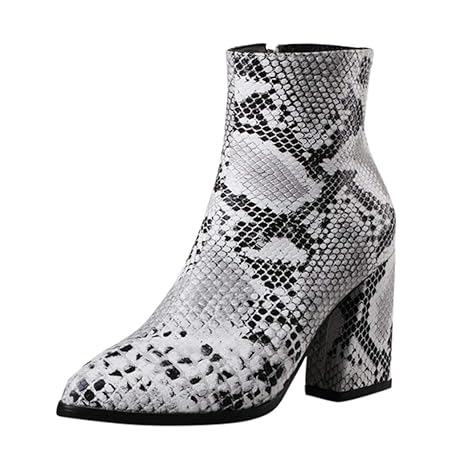 Yowablo Booties Women's Fashion Pointed High-Heeled Snake Print Shoes Ankle Large Size