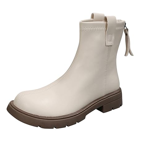 Yowablo Fashion Women Faux Leather Plain Autumn Thick Sole Square Heels Zip Short Booties Round Toe Shoes For Calves