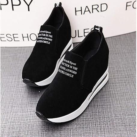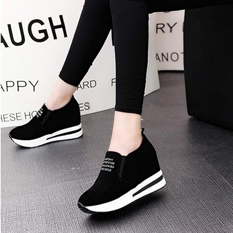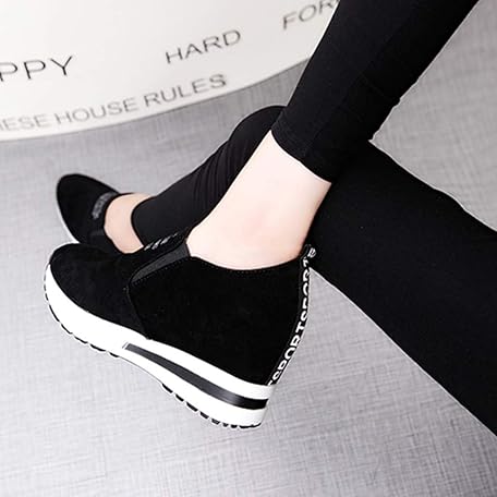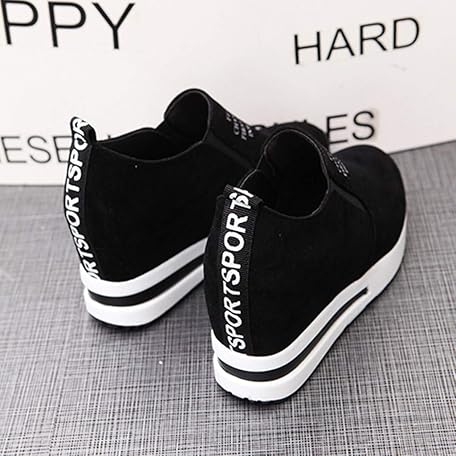 Thông tin sản phẩm Yowablo Trainers Women's Fashion Casual Flock Slip-On Thick Platform Sports Wedges Shoes (36, Black), black