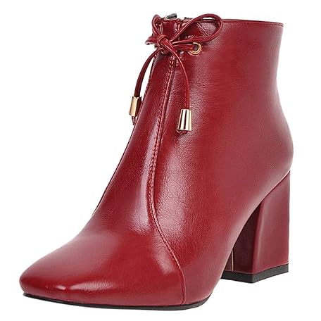 Yowablo Women's Ankle Boots Bow Square Heels Zip Plain Short Ankle Boots Square Shoes