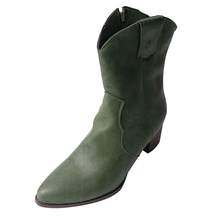 Yowablo Women's Ankle Boots Lace-Up Ankle Boots Knee Side Zip Naked Boots Square Heel Casual Short Booties