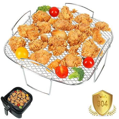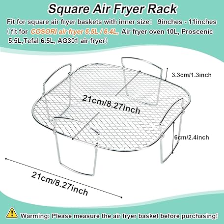 Thông tin sản phẩm YQL Hot Air Fryer Accessories for Cosori Hot Air Fryer 5.5L XXL/6.4L, Ninja Hot Air Fryer Max Pro 6.2L AF180EUCP, 21 cm (Diagonal: 24.5 cm) 304 Stainless Steel Square Air Fryer Rack