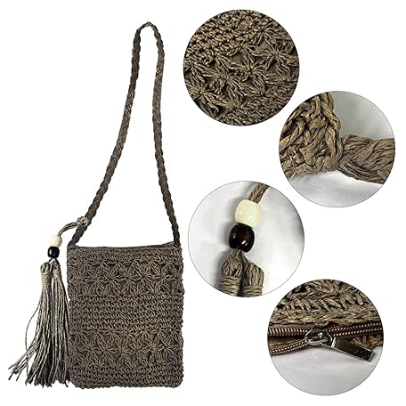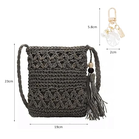 Thông tin sản phẩm YSDYY 1 Women's Straw Single Shoulder Bag, Summer All-match Beach Shoulder Bag, Hollow Leisure Bag with Tassel, 1 Beach Shelter Accessory Pendant with Metal Buckle