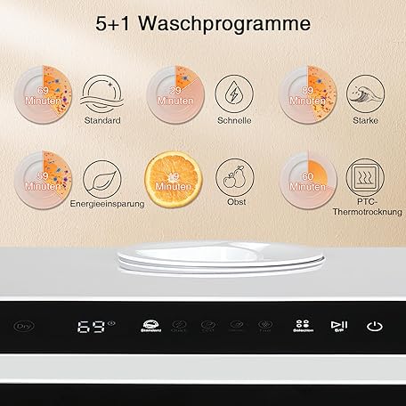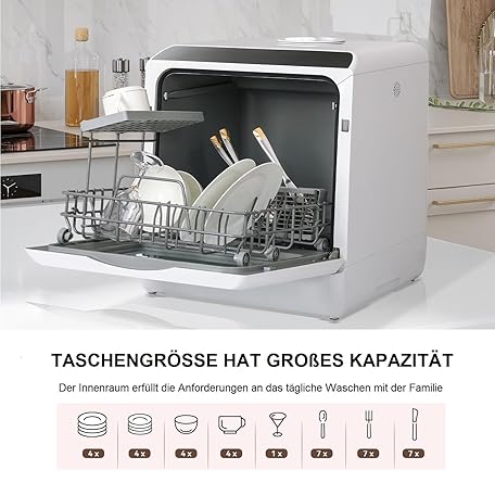 Thông tin sản phẩm YU YUSING Mini Geschirrspüler Tischgeschirrspüler mit 5+1 Programme, Spülmaschine Klein für 4 Gedecke mit/ohne Wasseranschluss, 5L Wassertank, Touch Control, LED-Display, für Zuhause Büro Camping