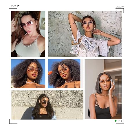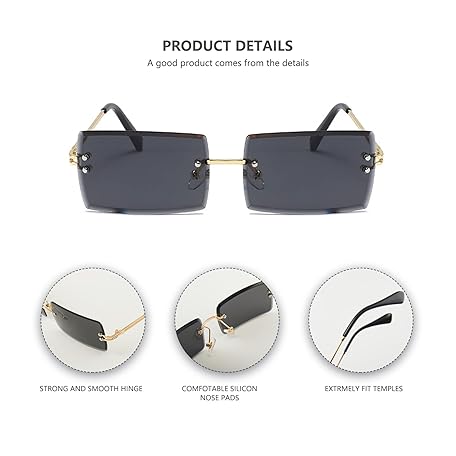 YUELUQU Retro Frameless Sunglasses for Women Men Fashion Retro Rectangle Glasses Square Transparent Sunglasses