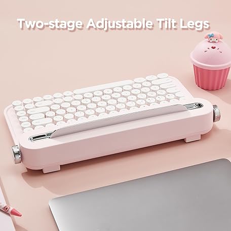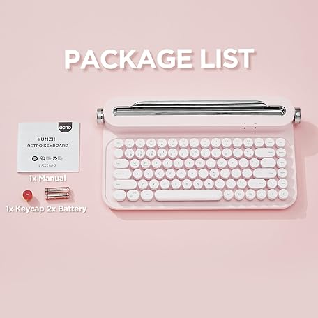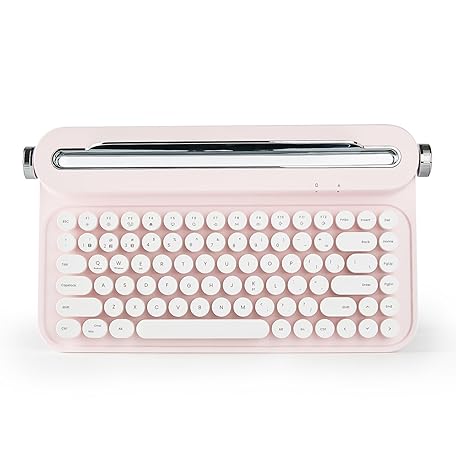 Thông tin sản phẩm YUNZII ACTTO B305 Wireless Typewriter Keyboard, Retro Bluetooth Aesthetic Keyboard with Built-in Stand for Multi-Device (B305, Baby Pink)