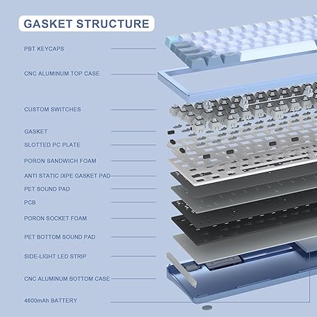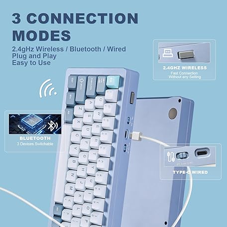Thông tin sản phẩm YUNZII AL71 68% Mechanical Keyboard, All-Aluminium CNC, Hot-Swap Ring, 2.4GHz Wireless BT5.0/USB-C Wired Gaming Keyboard, NKRO RGB, for Win/Mac (Blue, Silent Switch)