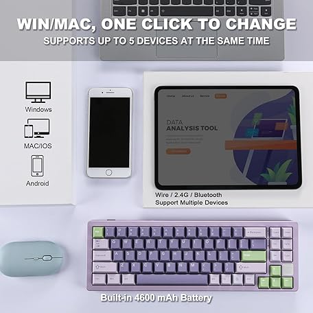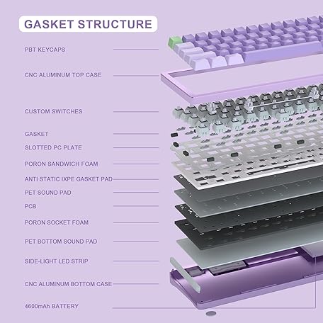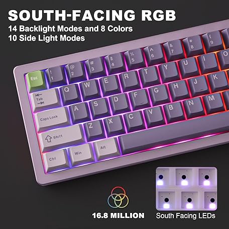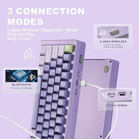 Thông tin sản phẩm YUNZII AL71 68% Mechanical Keyboard, All-Aluminium CNC, Hot-Swap Ring, 2.4GHz Wireless BT5.0/USB-C Wired Gaming Keyboard, NKRO RGB, for Win/Mac (Purple, Silent Switch)